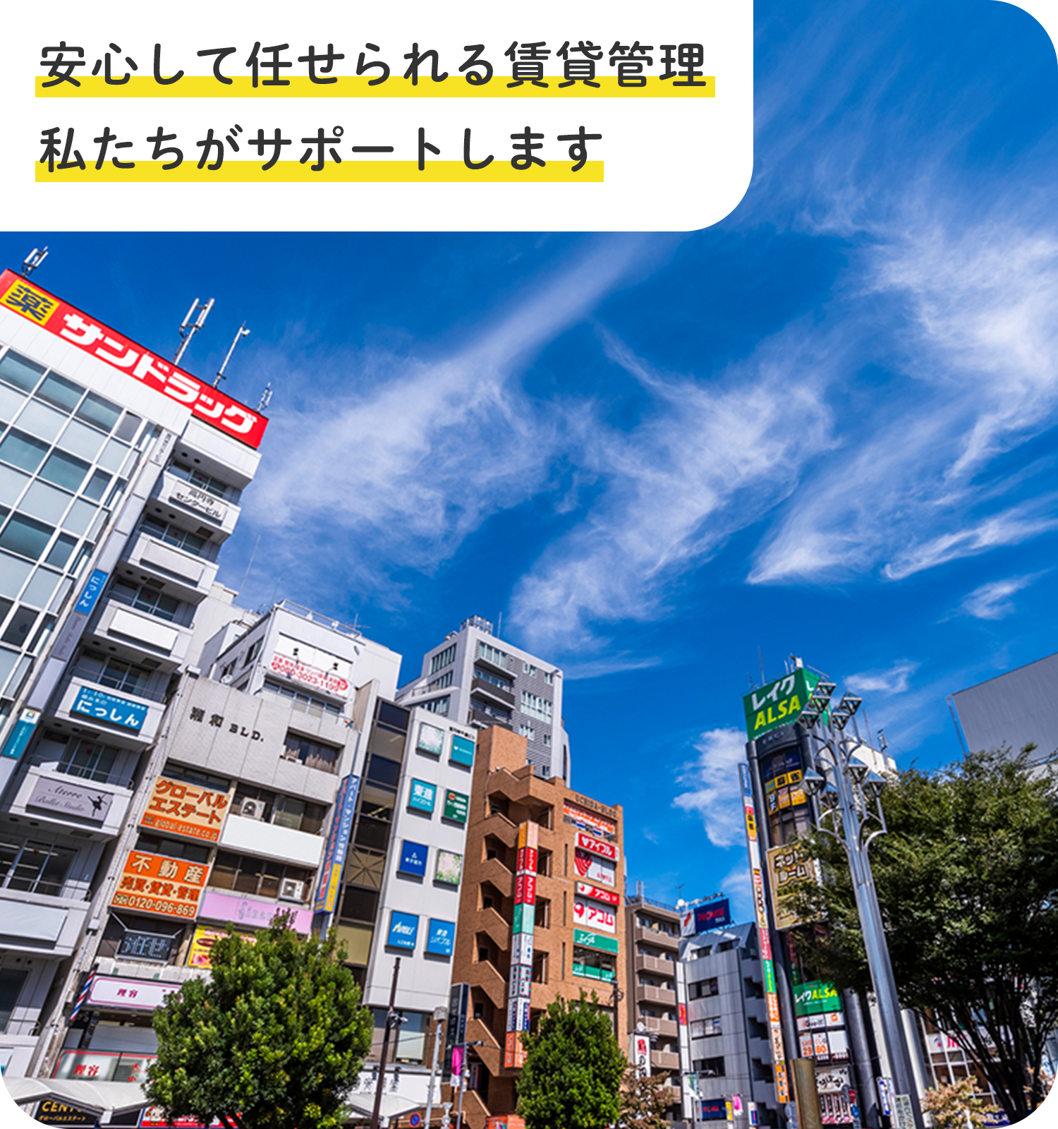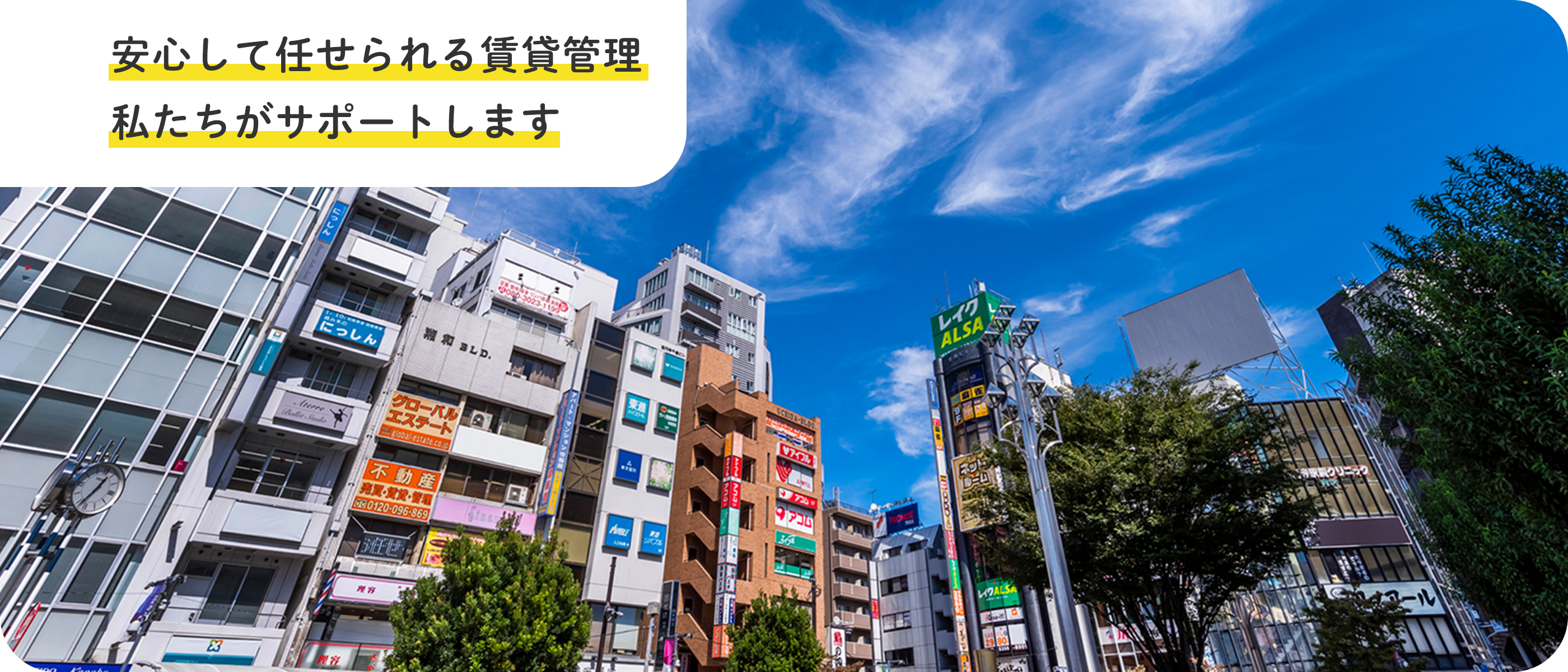 オーナー様の⼤切な資産を安⼼してお任せいただけるよう、⼊居者募集から契約⼿続き、家賃管理、退去時の対応まで、賃貸経営に関わる業務をトータルでサポートいたします。
