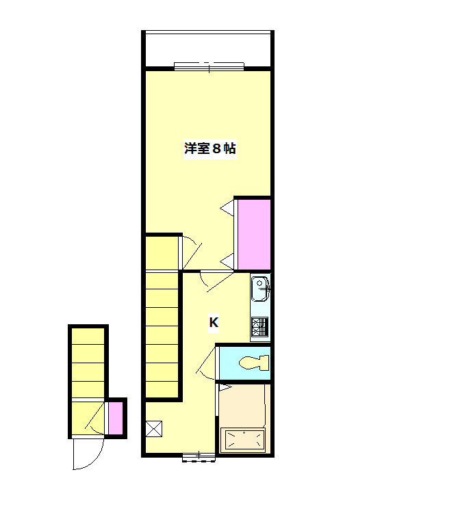 | 間取内容 | 洋室8帖 2階 K2.5帖 2階 洋室8帖 |